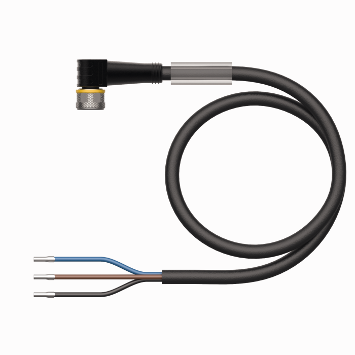 Cablu de conectare, conector mamă M8, cu cot, 3-pini, lungime cablu: 2 m, material manta: PVC, negru; certificare cULus |