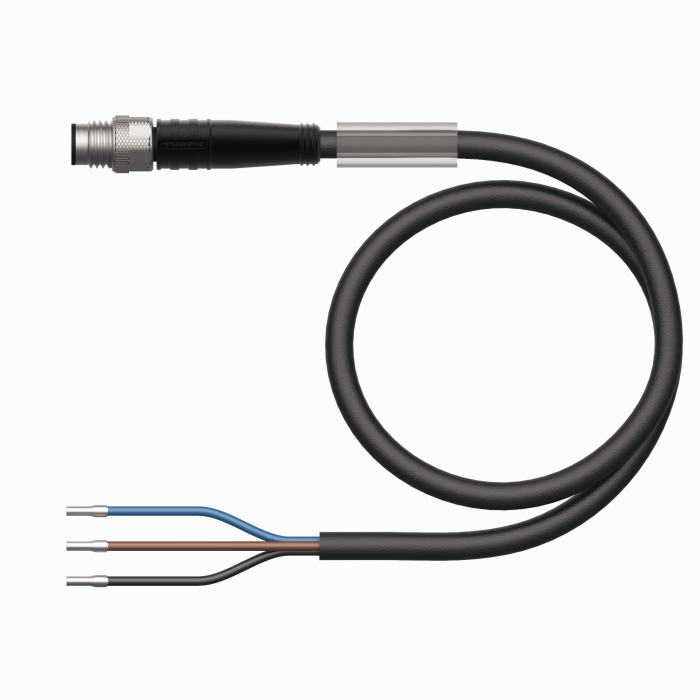 Cablu de conectare, conector tată M8, drept, 3-pini, lungime cablu: 2 m, material manta: PUR, negru; certificare cULus |