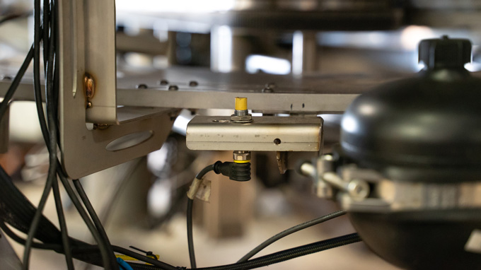 The controller not only needs the coordinates of the selected asparagus spears to fine tune the harvesting process, but also a continuous flow of information on the position and movement of the modules. This starts with the query of how many cassettes are currently located in the buffer, i.e. how many are in park position, and those currently detecting an asparagus shoot in the circuit. For this AvL uses the tiny BI3-M08K inductive sensors. The exact identification of the harvesting modules is implemented with RFID – using the TN-Q14 HF read/write head, which reads the individual code of each cassette. Added to this is the position detection provided by a rotary encoder.